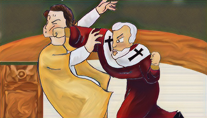 But Nicholas was much more than just the inspiration for Jolly Ole Saint Nick. He played a significant role at the First Council of Nicaea, where some very heavy theological discussions took place. Emperor Constantine called the First Council of Nicaea in 325 AD to address the Arian controversy. Arius, a priest, was going about teaching that Jesus wasn’t fully divine, which went against the orthodox understanding of the Trinity. Nicholas was so passionate about defending the true nature of Christ that he ended up punching Arius during the council. Now, that might seem shocking, but it shows just how committed Nicholas was to protecting Christian orthodoxy. (And you thought our council meetings could get heated!)